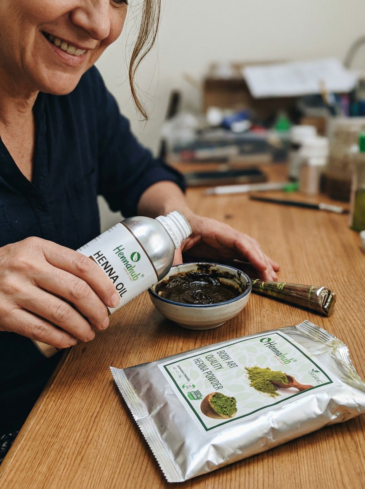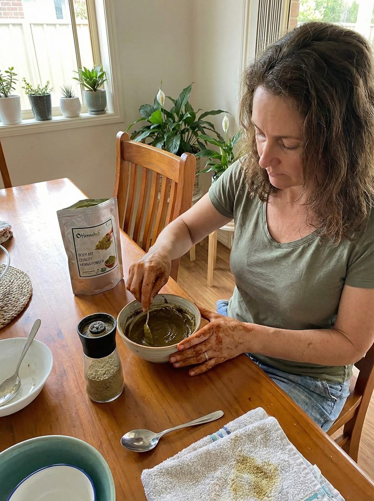 Prepared from selected henna leaves and natural botanicals only.